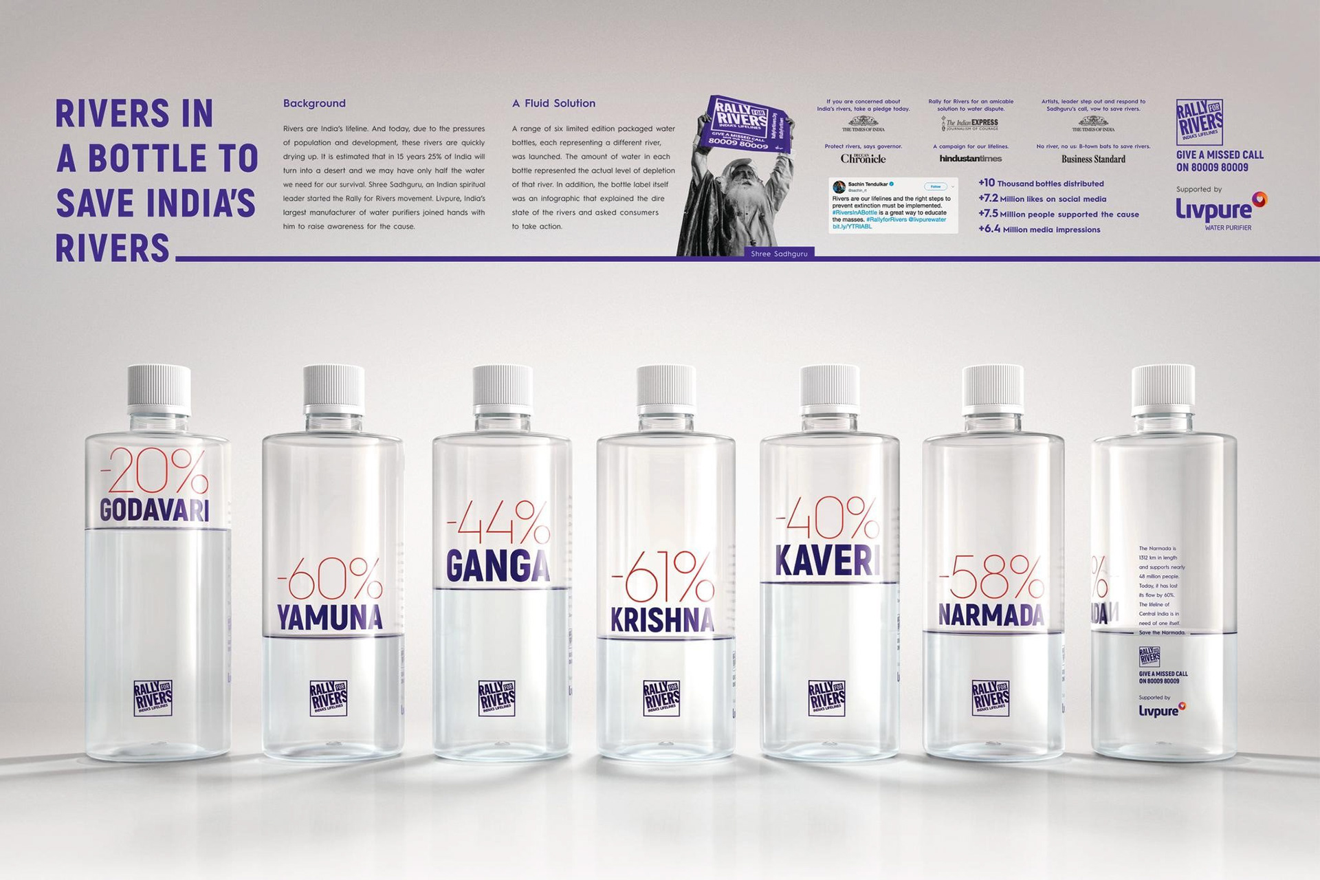 Rivers in a Bottle turned an abstract environmental crisis into something tangible. A limited-edition range of packaged water bottles was created, each representing one of India’s rivers. As the water level in each bottle reduced, it mirrored the real depletion of that river. The bottles acted as visual proof of what is being lost, prompting consumers to reflect on the state of India’s rivers and take action.